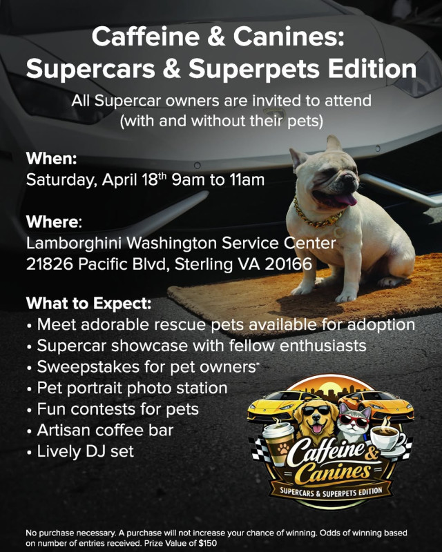 Experience a unique community gathering where supercars meet superpets at this special Caffeine & Canines edition. Enjoy a lively morning surrounded by exotic cars, adorable rescue animals, and fellow enthusiasts—all while sipping great coffee and soaking in the vibrant atmosphere.