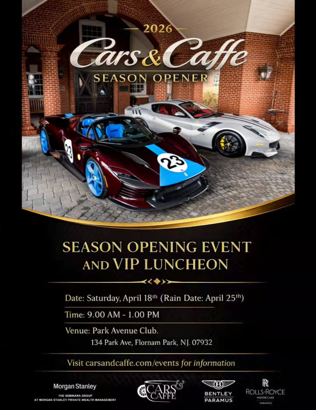Kick off the 2026 season in style at the Cars & Caffe Season Opening Event, hosted at the prestigious Park Avenue Club. This highly anticipated gathering brings together an exceptional collection of classic, exotic, and unique vehicles, paired with a premium experience that includes a VIP luncheon and top-tier hospitality for enthusiasts and collectors alike.