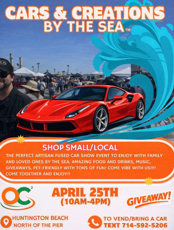 Cars & Creations by the Sea brings a full day of automotive culture to the Huntington Beach coastline. Set against a scenic ocean backdrop, this event combines stunning cars, unique vendors, and a vibrant community atmosphere for an unforgettable beachside experience.