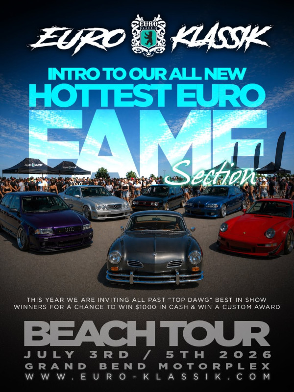 Euro Klassik returns bigger than ever with the Beach Tour 2026, introducing the all-new “Hottest Euro Fame Section.” This elite showcase invites past “Top Dawg” Best in Show winners to compete head-to-head for cash, custom awards, and ultimate bragging rights in one of the most competitive Euro car events of the year.