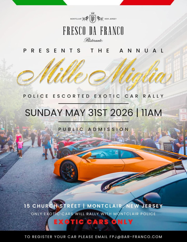 Experience a luxury-filled day at the annual Mille Miglia exotic car rally, where high-end supercars take over the streets of Montclair. With police-escorted exotics, a vibrant crowd, and an upscale atmosphere, this event brings together car enthusiasts for an unforgettable showcase.