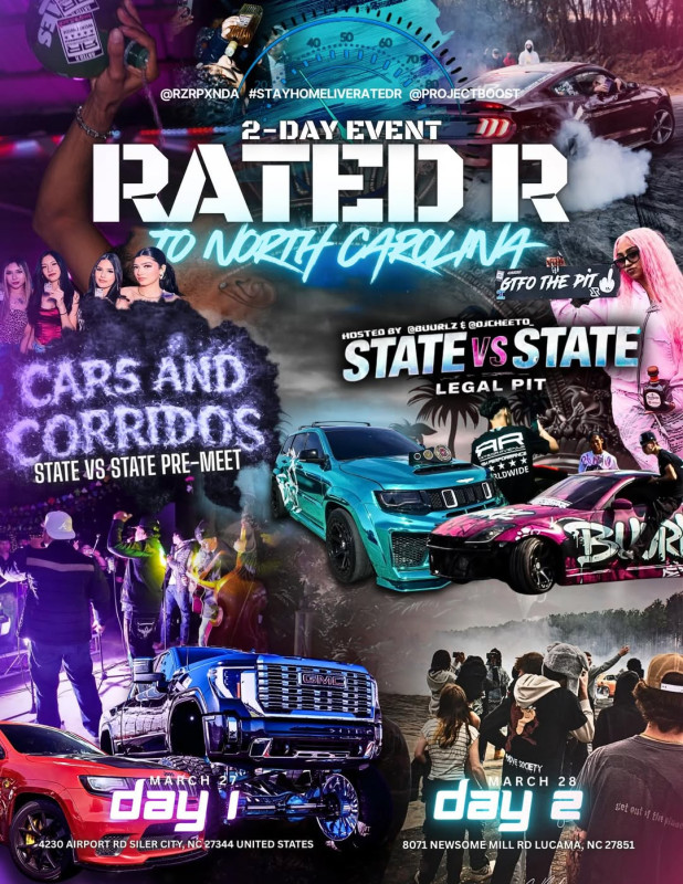 Get ready for a full weekend of action at the Rated R to North Carolina event, a two-day automotive experience featuring high-energy pit action, pre-meets, and a state vs state showdown. From street-style builds to performance machines, this event brings together car culture, music, and adrenaline-filled activities.