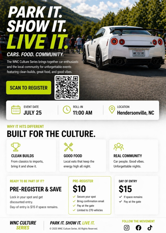 🅿️ Large attendee display area available to showcase your own vehicle