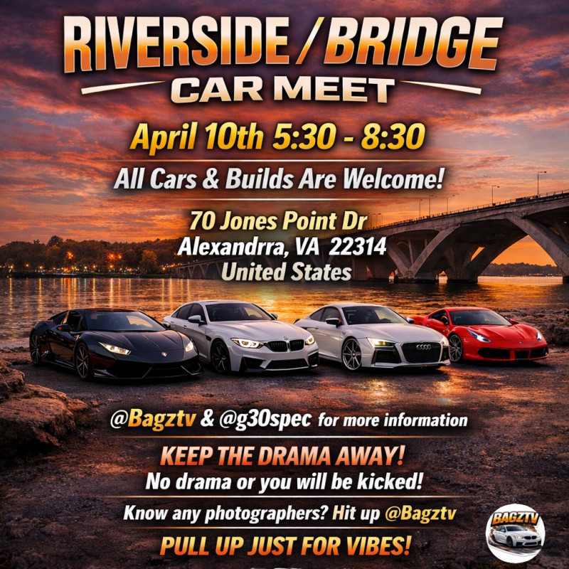Pull up for a chill evening by the water at the Riverside / Bridge Car Meet, where all cars and builds are welcome. Set against a scenic backdrop, this meet is all about good vibes, clean cars, and a respectful community atmosphere.