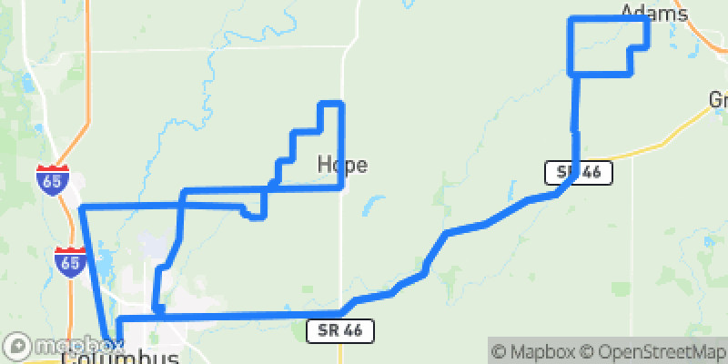 A picturesque drive through the rolling hills surrounding Bloomington, featuring scenic vistas of Lake Monroe, dense forests, and charming rural countryside.Bloomington Bluff Ridge Loop