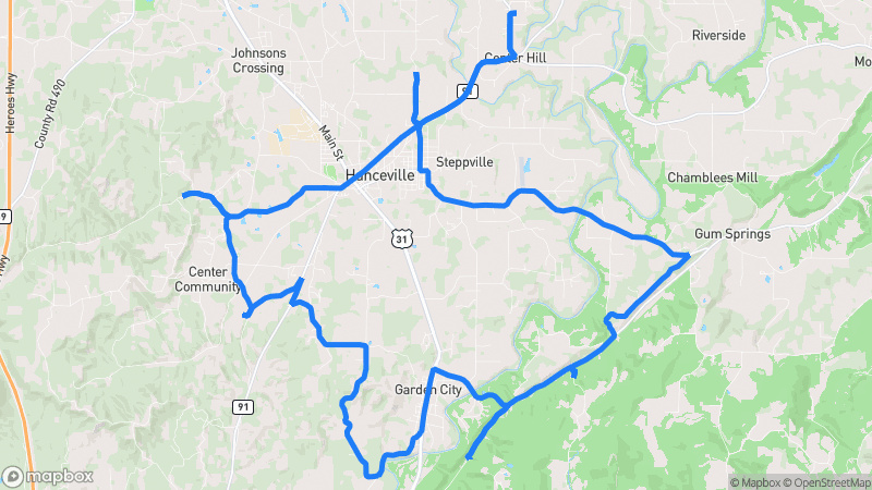 A picturesque drive through rural Blount County featuring rolling hills, farmland vistas, and peaceful country roads with minimal traffic.Blount County Scenic Loop