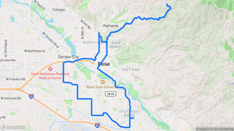 A scenic drive through the rolling foothills north of Boise, offering panoramic views of the Treasure Valley, winding roads through rural landscapes, and glimpses of the Boise River.Boise Foothills Scenic Loop
