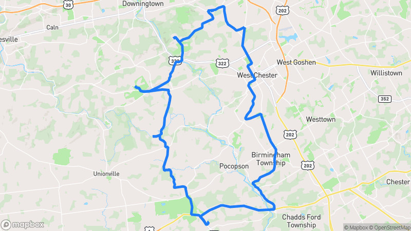 A scenic drive through rolling farmlands, historic covered bridges, and lush woodlands of rural Chester County, Pennsylvania.Chester County Countryside Loop