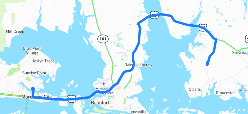 A picturesque journey along the North Carolina coast featuring ocean views, charming small towns, and serene rural landscapesCoastal Charm Loop
