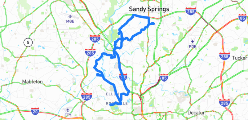 A relaxing drive through western Cobb County featuring rolling hills, forest scenery, and glimpses of Lake Allatoona with a mix of suburban and rural landscapes.Cobb County Scenic Loop