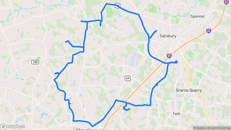 A picturesque journey through the rolling countryside of western North Carolina, featuring winding roads, pastoral farmland views, and scenic forest stretches.Davie County Scenic Loop