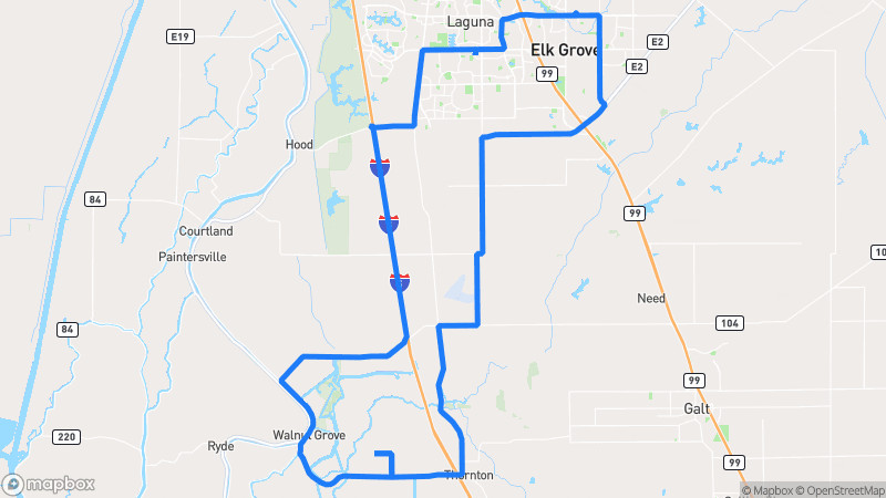 A picturesque drive through the western Davis countryside featuring vineyards, orchards, and scenic agricultural vistas with views of the coastal mountains in the distance.Davis Wine Country Loop