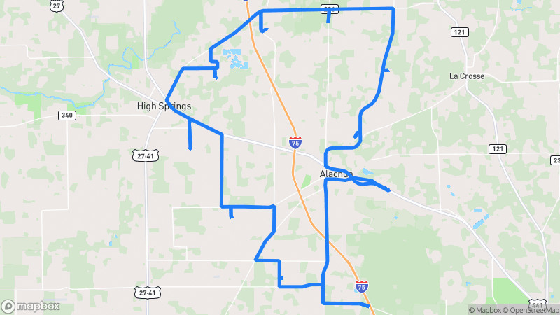 A scenic loop through the rolling countryside and forest preserves surrounding Gainesville, featuring picturesque rural landscapes and winding country roads.Gainesville Countryside Loop