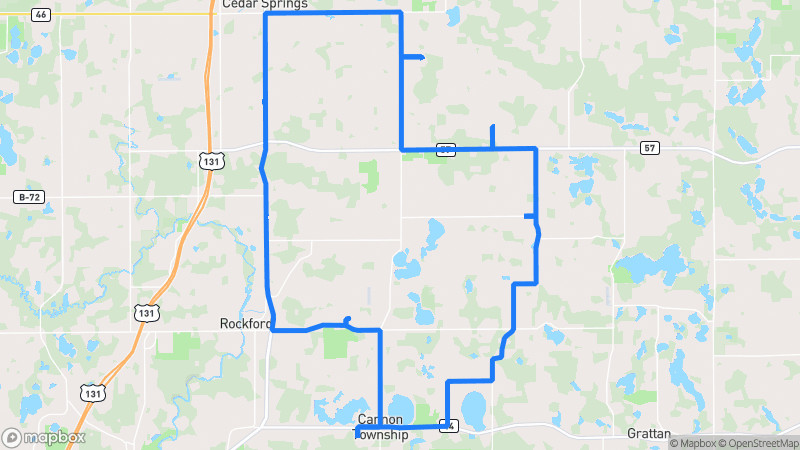 A picturesque journey through Michigan's serene countryside with rolling hills, forest canopies, and scenic water viewsGrand Rapids Rural Loop