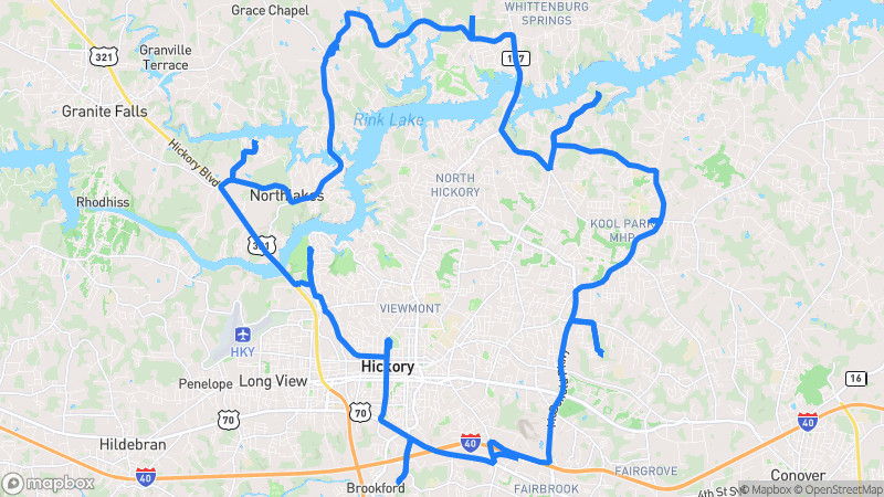 Driving tips: Drive cautiously on the winding sections around Lake Hickory. Watch for cyclists on weekends.