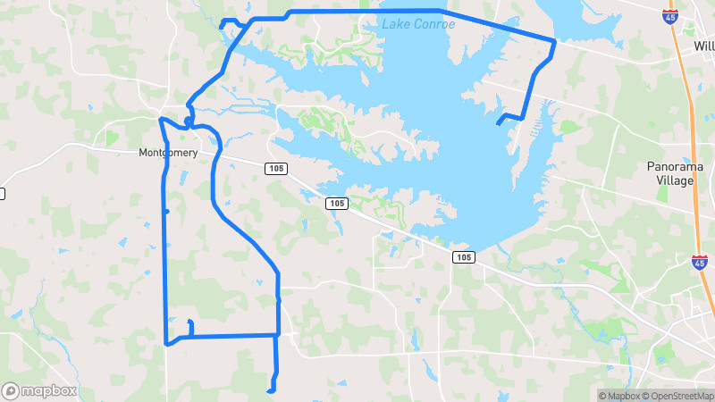 A picturesque drive circling the western edge of Lake Conroe through the Sam Houston National Forest, featuring stunning lake views, dense pine forests, and charming rural landscapes.Lake Conroe Scenic Loop