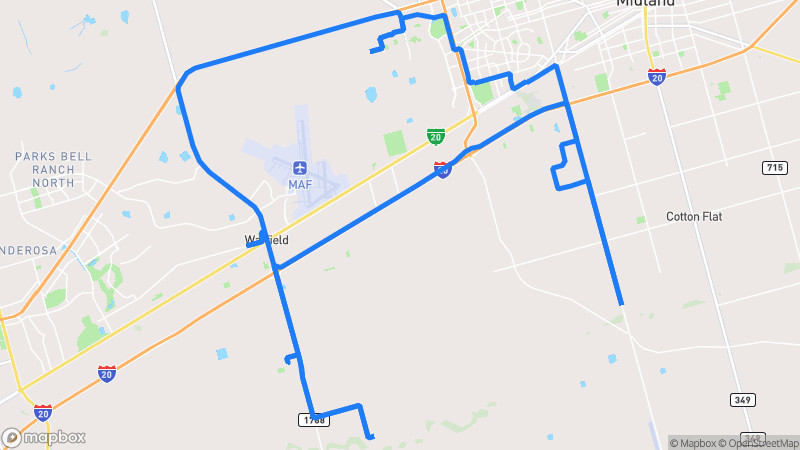 A picturesque drive through the diverse West Texas landscape surrounding Midland. This route offers expansive desert views, gentle rolling terrain, and beautiful sunrise/sunset opportunities with minimal traffic.Midland Desert Panorama Loop