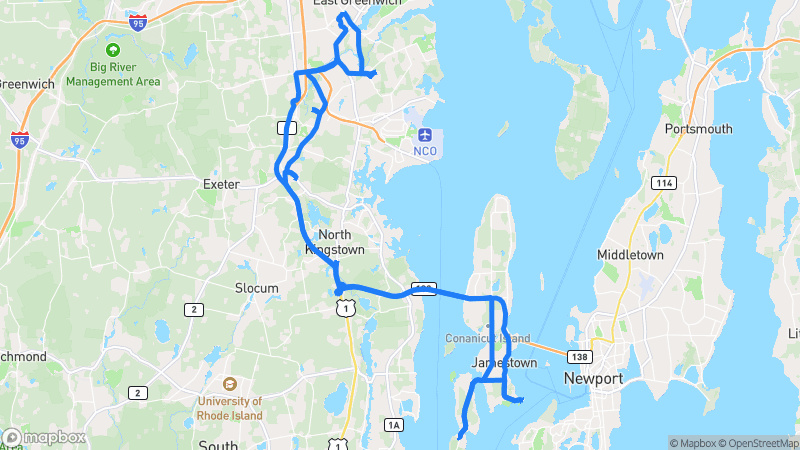 A picturesque drive along Rhode Island's southern coastline featuring charming villages, ocean views, and rolling countrysideMystic Coastal Loop
