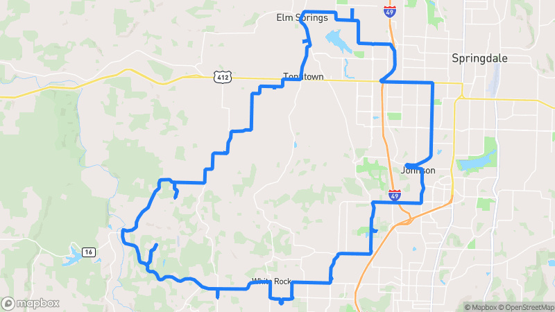 A beautiful circular drive through the eastern edge of the Ozarks featuring rolling hills, forest views, and scenic country roads with moderate elevation changes.Ozark Mountain Curves Loop