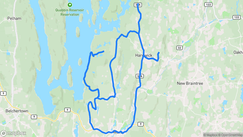 A picturesque drive through rural Massachusetts featuring rolling hills, forest canopies, and charming New England landscapes around Quabbin ReservoirQuabbin Scenic Loop