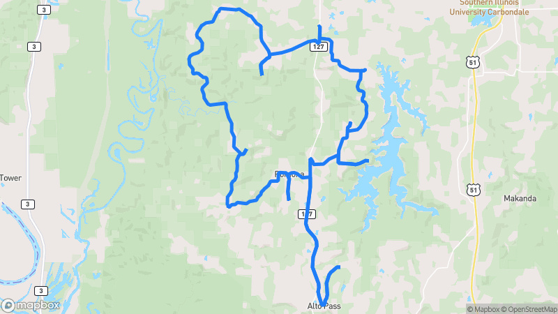 This circular route winds through the beautiful Shawnee National Forest area, offering stunning views of limestone bluffs, lush forests, and pristine waterways. The drive showcases some of Southern Illinois' most picturesque natural landscapes while maintaining a comfortable pace along winding country roads.Shawnee Forest Scenic Loop