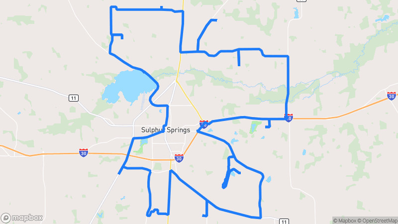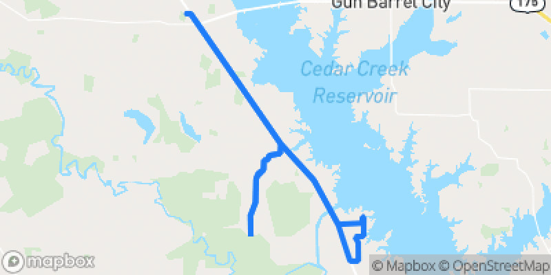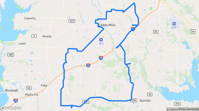 A picturesque drive through the rolling countryside near Terrell, featuring open farmland, wooded areas, and charming country roads with gentle curves and minimal traffic.Terrell Tangle Scenic Loop