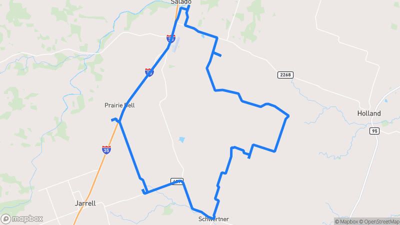 Driving tips: Watch for wildlife near Lake Waco, especially at dawn and dusk. Some country roads have occasional farm equipment. Slow down on curves in the western portion of the route.
