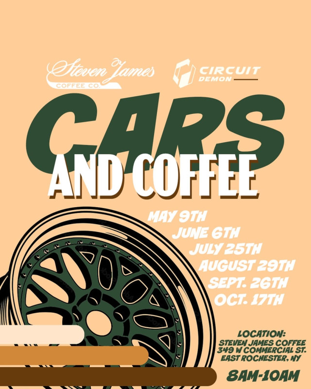 Cars and Coffee in East Rochester brings together the local car community for a monthly morning meet centered around great cars, quality coffee, and a top-tier breakfast experience. Hosted at Steven James Coffee Co., this event offers a welcoming and consistent space for enthusiasts to connect and enjoy car culture.