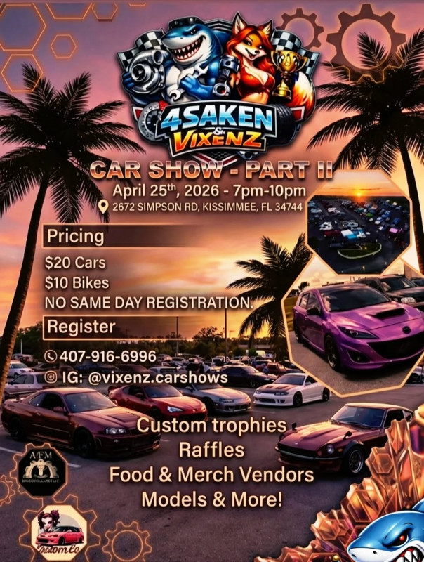 Pull up to Whips N’ Waygu at Palm Beach Meats Orlando for a chill evening of cars, food, and good vibes. This laid-back meet is the perfect spot to connect with fellow enthusiasts, enjoy exclusive food specials, and showcase your ride in a welcoming community atmosphere.